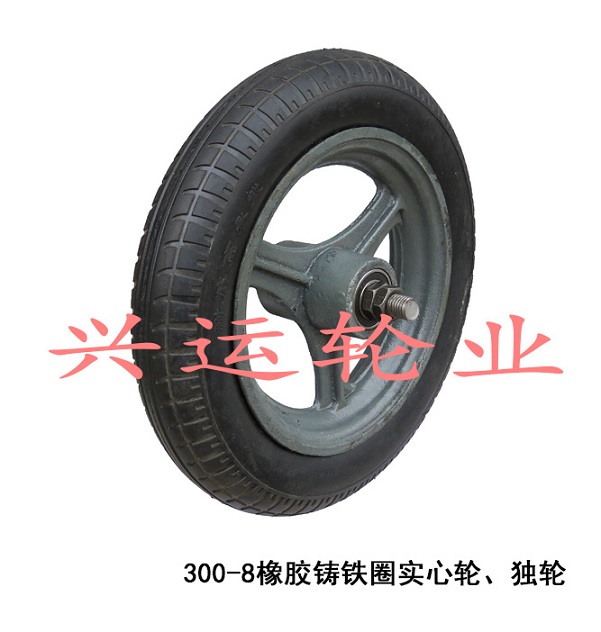 300-8鑄鐵圈橡膠實心輪、獨輪興運輪業